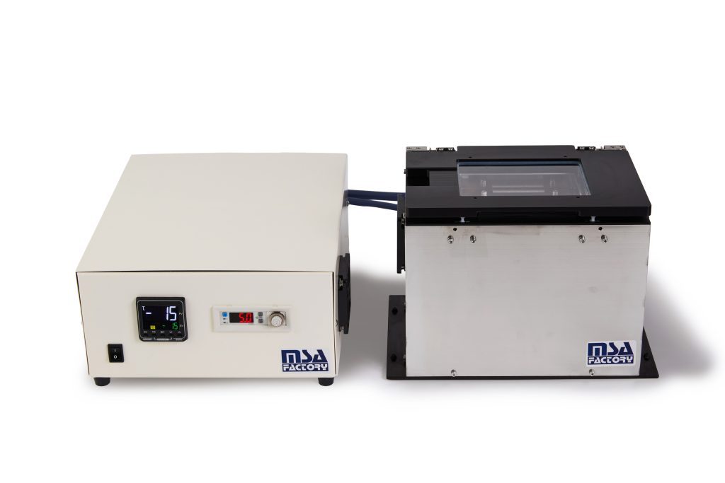 冷却水循環装置(不凍液管理、フロンなどの使用なし)が不要です。電源(AC100V)のみで運転いたします。比較的安価なチャンバーとして、ご導入いただけます。