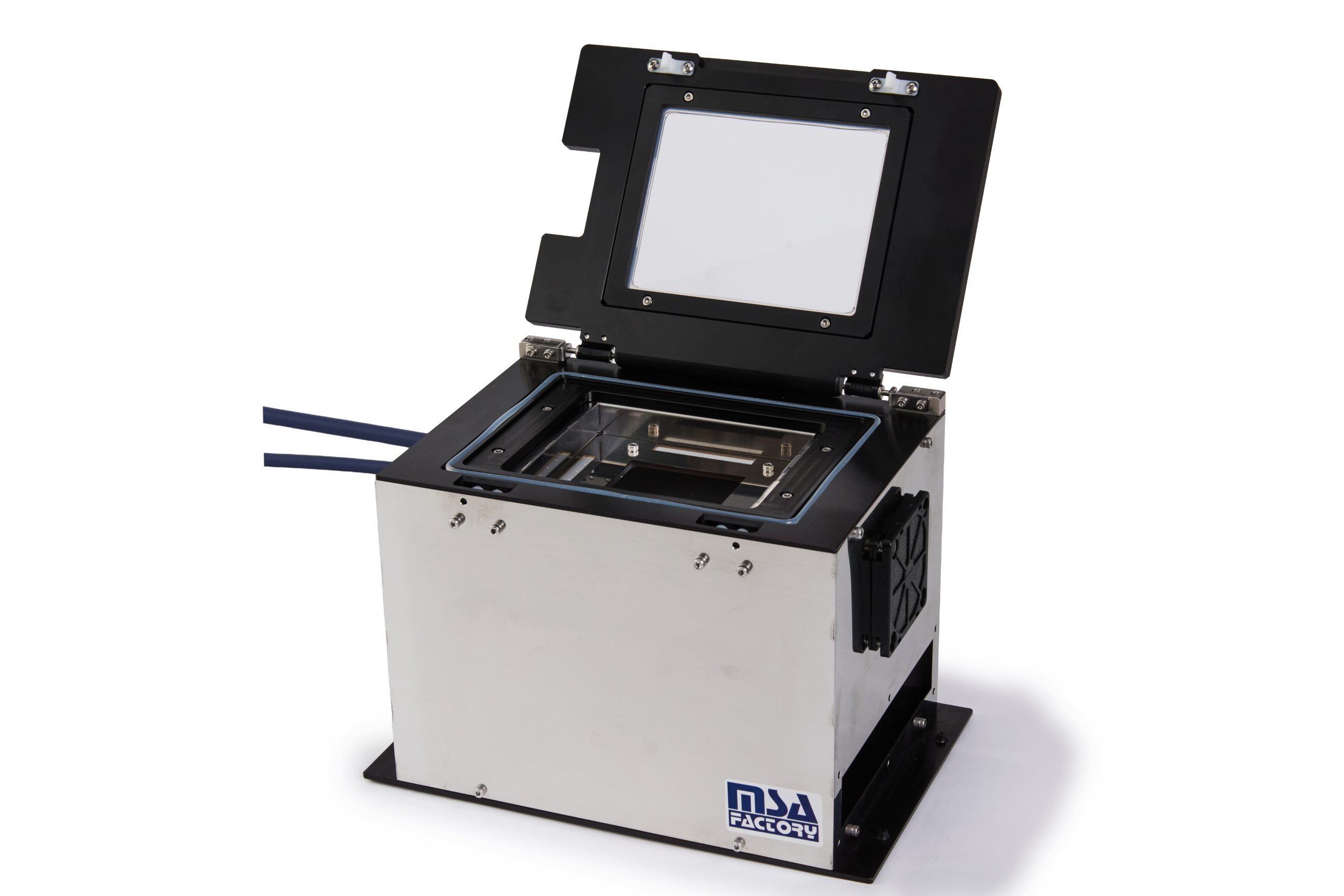 空冷ファンによるペルチェチャンバー N2ガスパージによる結露防止機能付き、上面フリーストップ扉による視認性優れた構造。ケーブル取り出しOPなどにより、様々な電子部品、光学部品の評価に最適です。 | |||