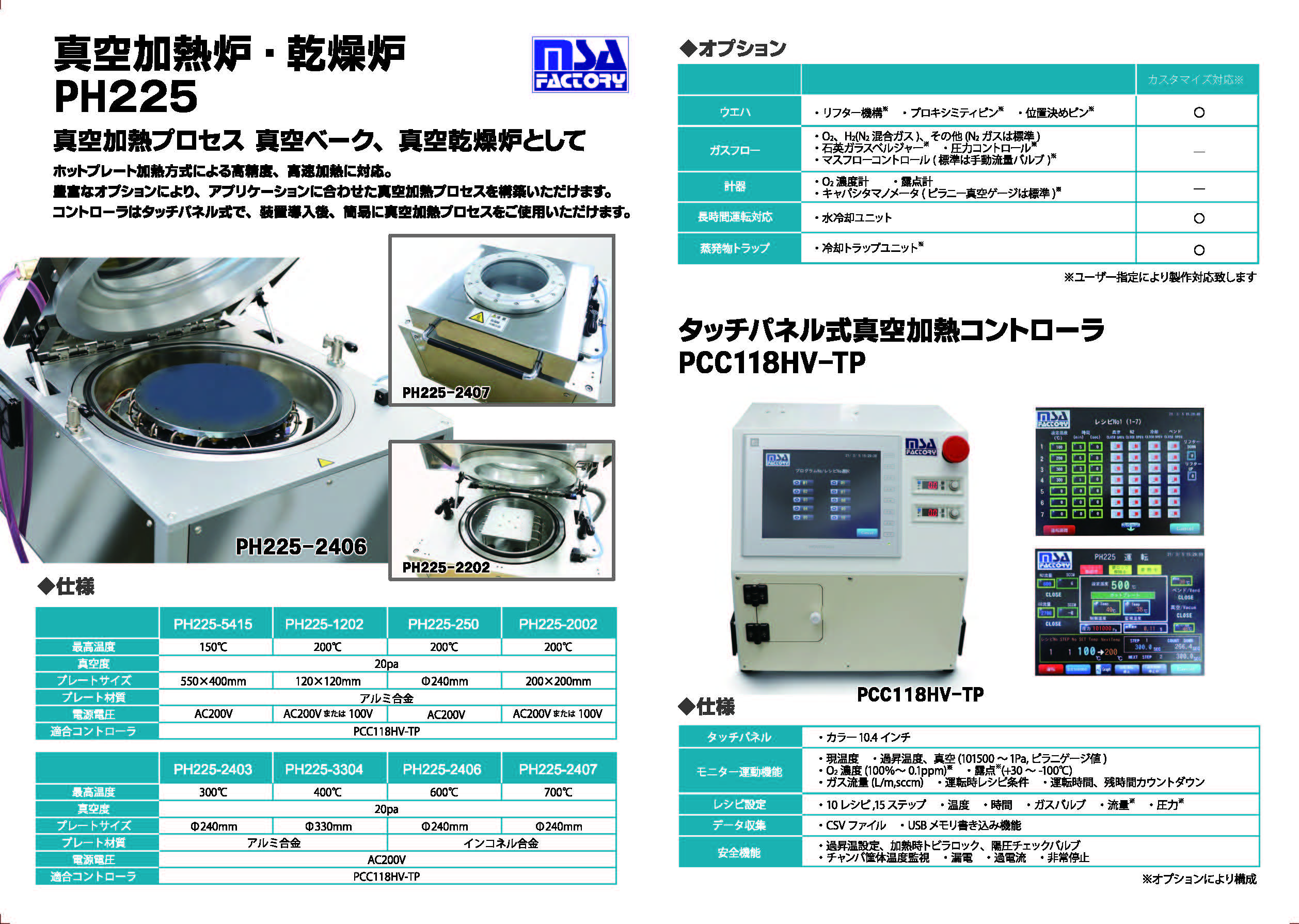More precise and efficient drying and baking processes in a vacuum environment. The MSA FACTORY PH225 Series offers a wide range of custom-designed options, including a vacuum furnace capable of heating up to 800°C. The PH225 Series optimizes heating uniformity and temperature increase speed for each workpiece, significantly reducing the time required for experiments during the prototype and evaluation stages.
